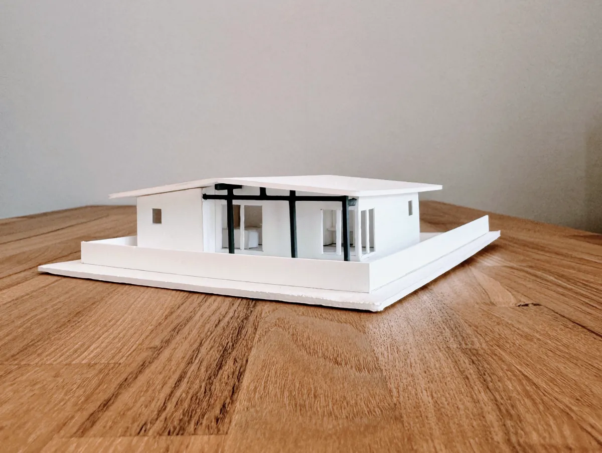 外観の理想はアメリカのミッドセンチュリーに作られていたアイクラーホーム。ガラスを多用した開放的な空間作り、カラフルな玄関ドア、むき出しの梁と柱構造。突き詰めれば断熱性や気密性など度外視しなければならない構造ですがグッドライトホームはデザインと性能のバランスを重視し、こだわりの外観をグッドライトホーム仕様で作り上げていきます。