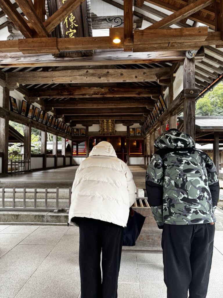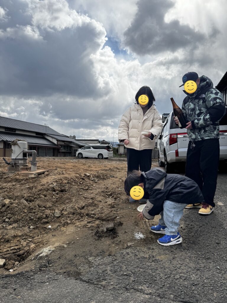 地元の宗像大社へ家族皆さんで参拝し、自身で土地を清めるおなじみのセルフ地鎮祭。