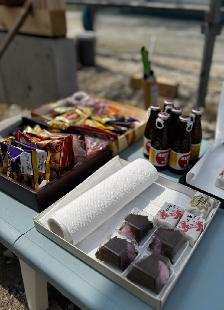 そして朝早くからご家族揃って棟上げに参加くださり、たくさんのお心遣いを頂いたお施主様