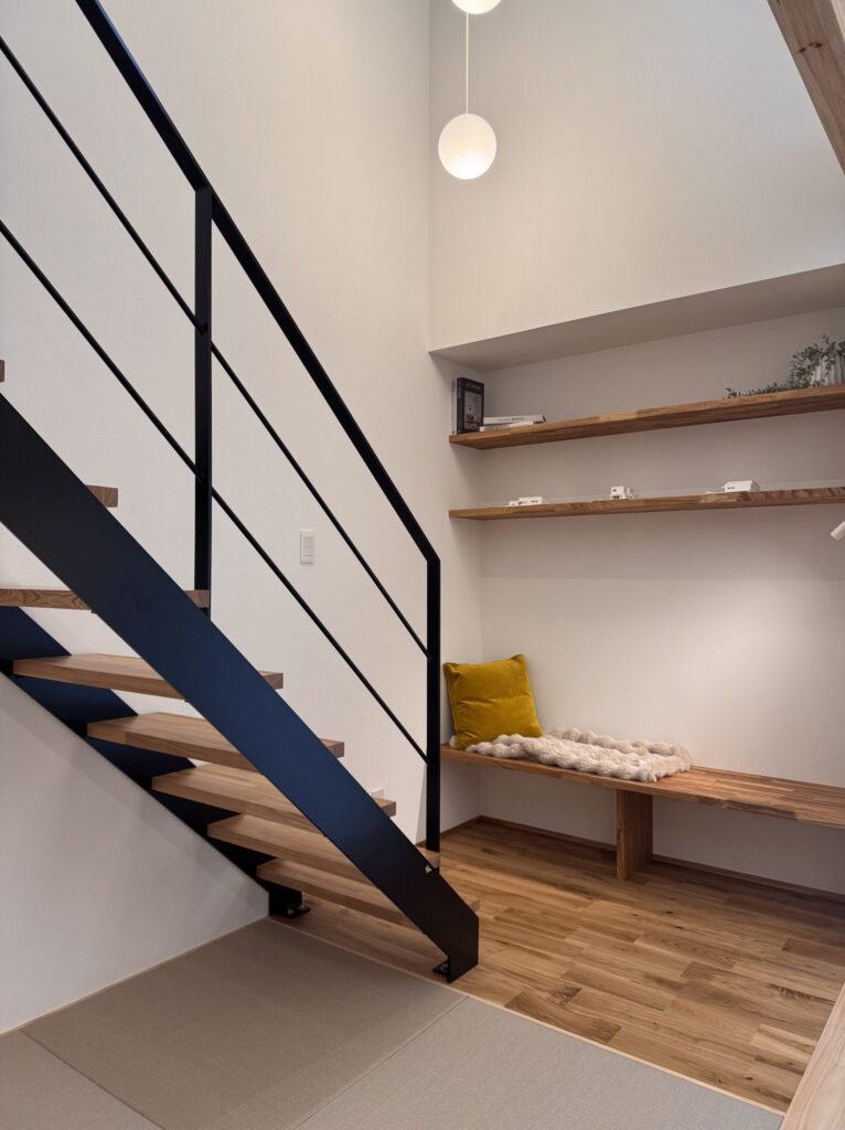 お施主様のご厚意により宗像市にて完成見学会が行われます。今回ご見学頂けるお家は、家のあちこちに心地よい居場所が設けられたお家。小上がり、ヌック、本棚まわり、テラス。家族それぞれが”今いちばん落ち着ける場所”を選べ、思い思いの時間を過ごせます。それぞれのペースを大切にしながら、ほどよい距離感でつながれる、そんな暮らしがここにあります。