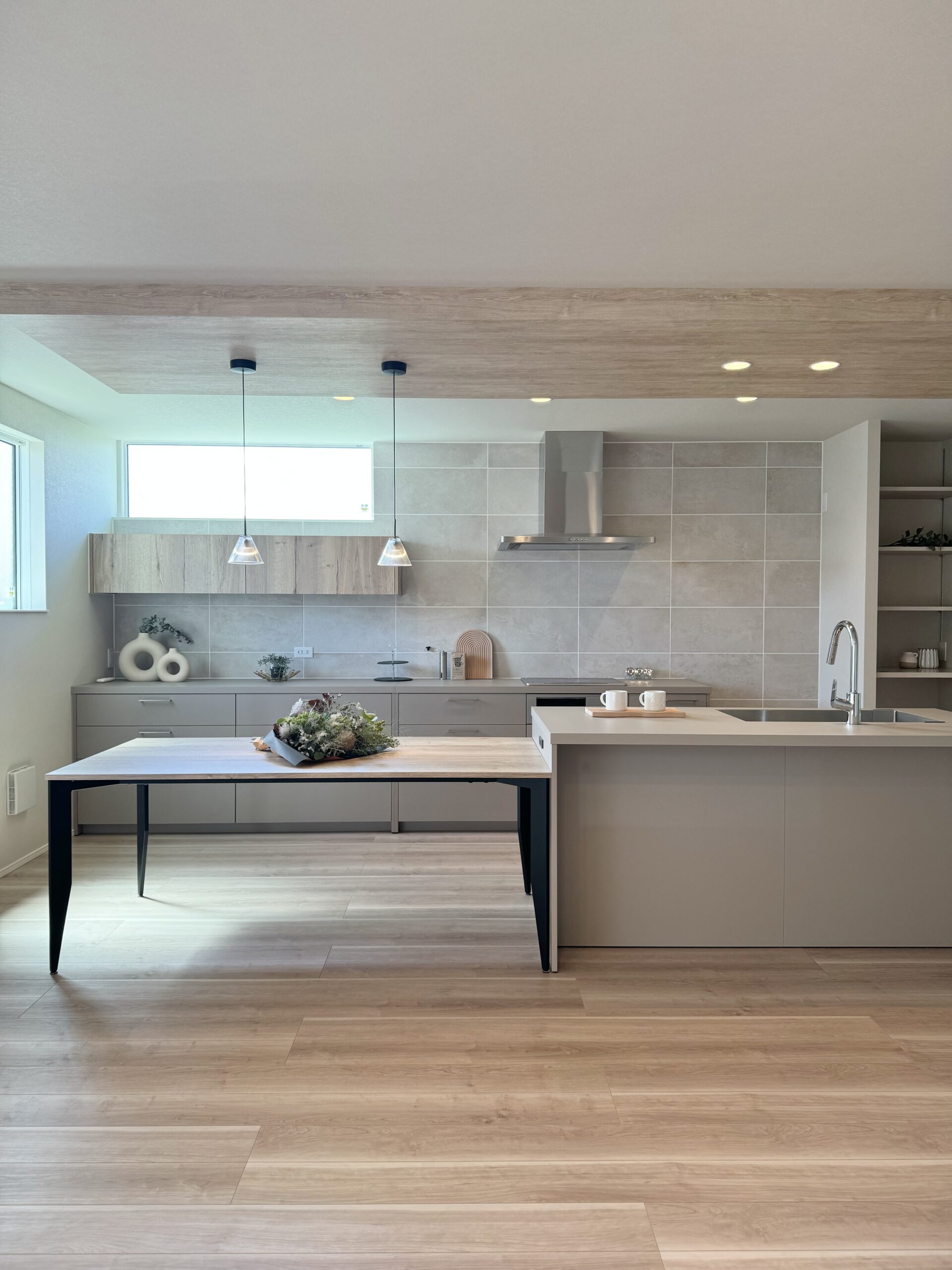 真鍮のアイテムをメインに、グレージュのクロスやフローリング、淡い色味のインテリアで仕上げました。